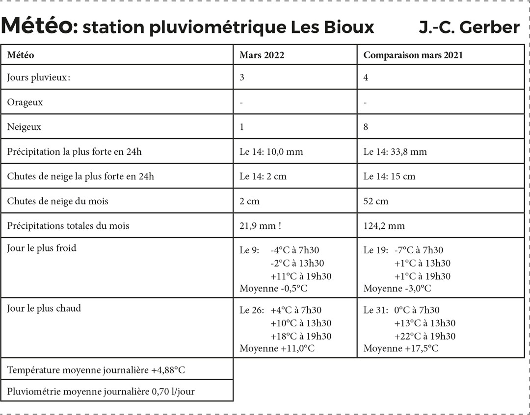 / Météo : Station pluviométrique – Les Bioux – J.-C Gerber