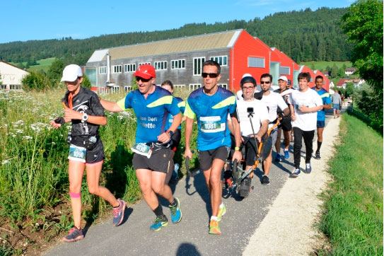 Cette année nous aurons à nouveau le plaisir d’accueillir l’association «Equipe défi Joëlette». Cette association a pour but de permettre à des personnes handicapées de participer à des courses. Chaque équipage sera composé de deux groupes de 5 coureurs qui se relayeront à tour de rôle tout au long des 24km. Ils s’élanceront du Centre sportif quelques dizaines de secondes avant le peloton.