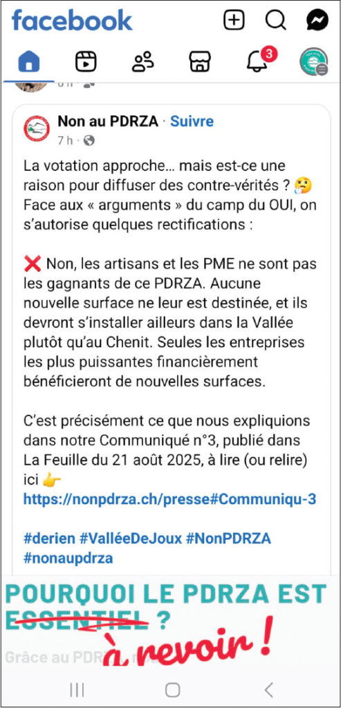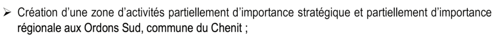 Tout d’abord, grâce au PDRZA, des zones locales et régionales pourront être densifiées, ce qui est moins le cas dans l’éventualité d’un refus populaire (cadre légal actuel plus restrictif). De plus, comme indiqué dans l’article de la Municipalité du 4 septembre 2025, un projet déjà bien avancé permettra de mettre à disposition un hectare entier aux PME locales sur le site des Ordons Sud (voir extrait ci-dessous). Cette parcelle ne pourra donc pas être dévolue uniquement à une grande entreprise comme l’indiquent les opposants, le plan le mentionne clairement.